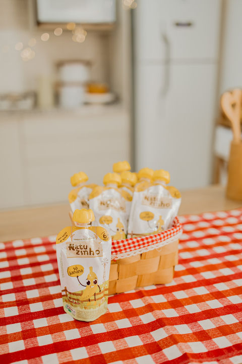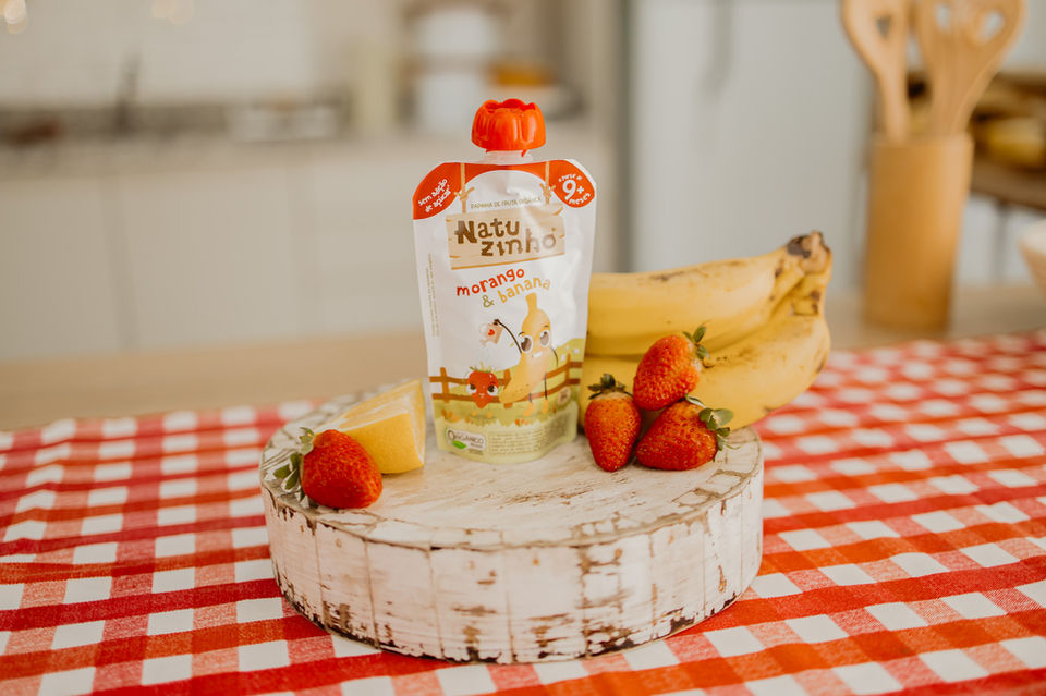 Fazemos papinhas de fruta em pouch com muuuuito carinho, pensadas pra bebês e crianças, com ingredientes orgânicos, de verdade e sem frescura.